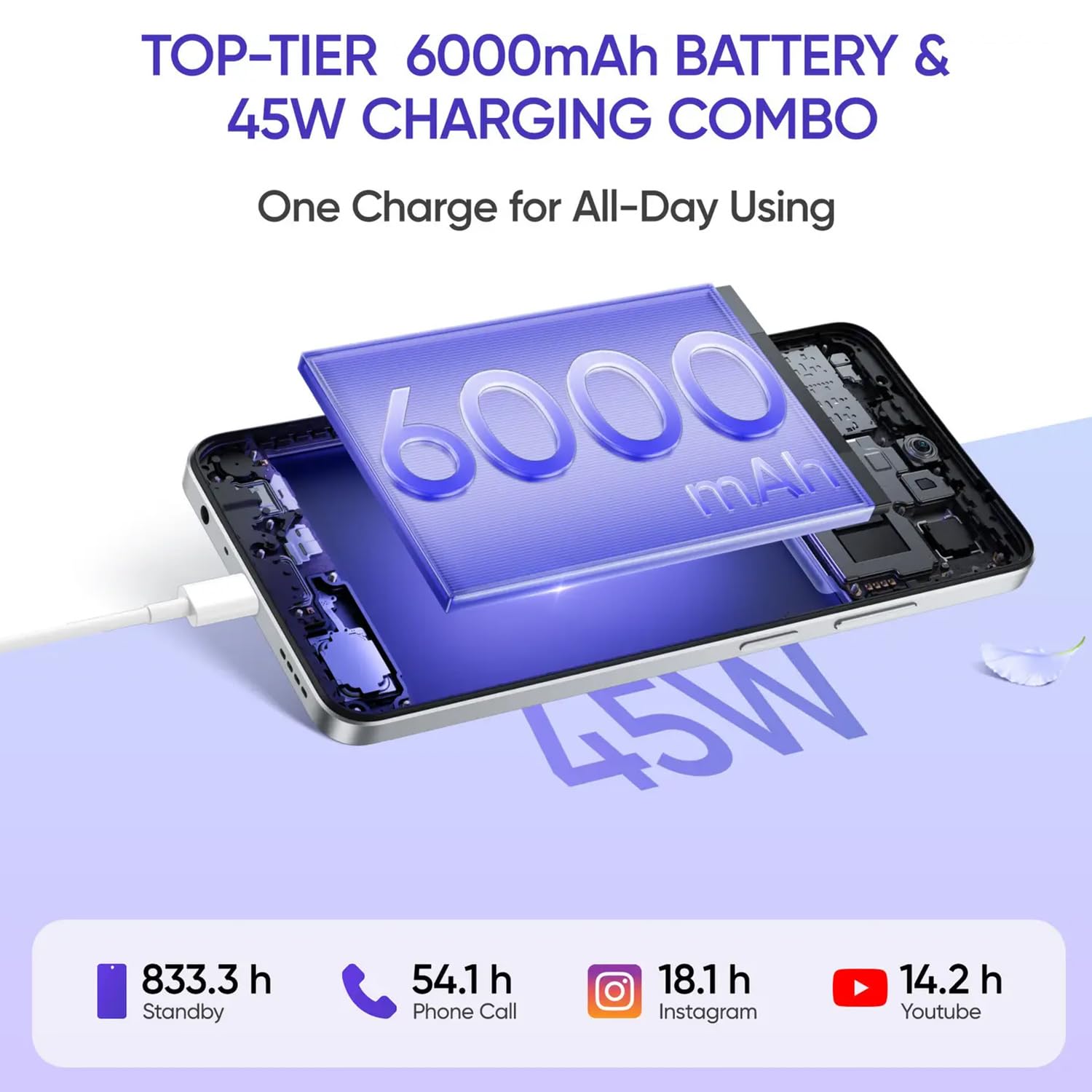 【Unstoppable Power, Lightning-Fast Charging】This mobile phone packs a massive 6000mAh battery that keeps up with your busiest days. When it’s time to recharge, 45W SUPERVOOC fast charging gets you powered up in minutes – so you spend less time waiting and more time doing.