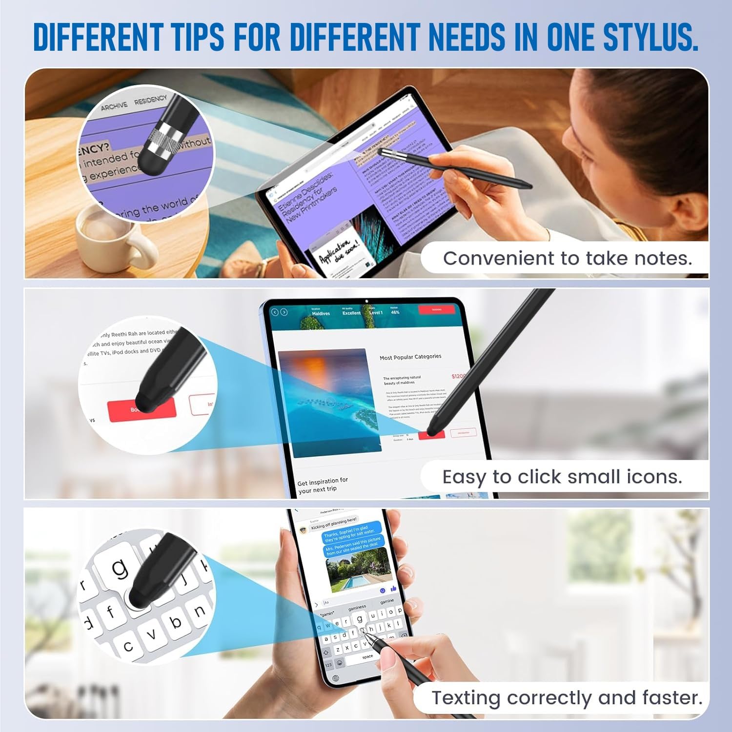 Fine Point Tip: Equipped with a fine point tip, this stylus allows for precise writing and drawing, ensuring detailed work on any touch screen surface.