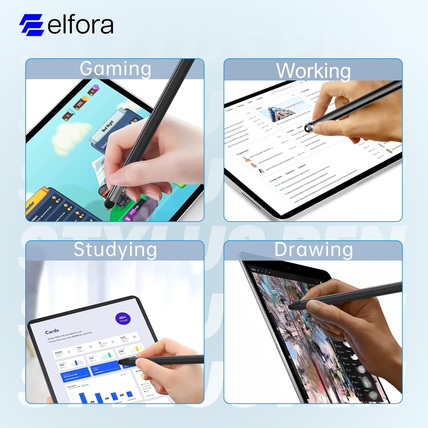 Universal Compatibility: The Elfora 2-in-1 Tablet Stylus Pen works seamlessly with all touch screen devices, including iOS, Android, and Windows, making it versatile for various applications.