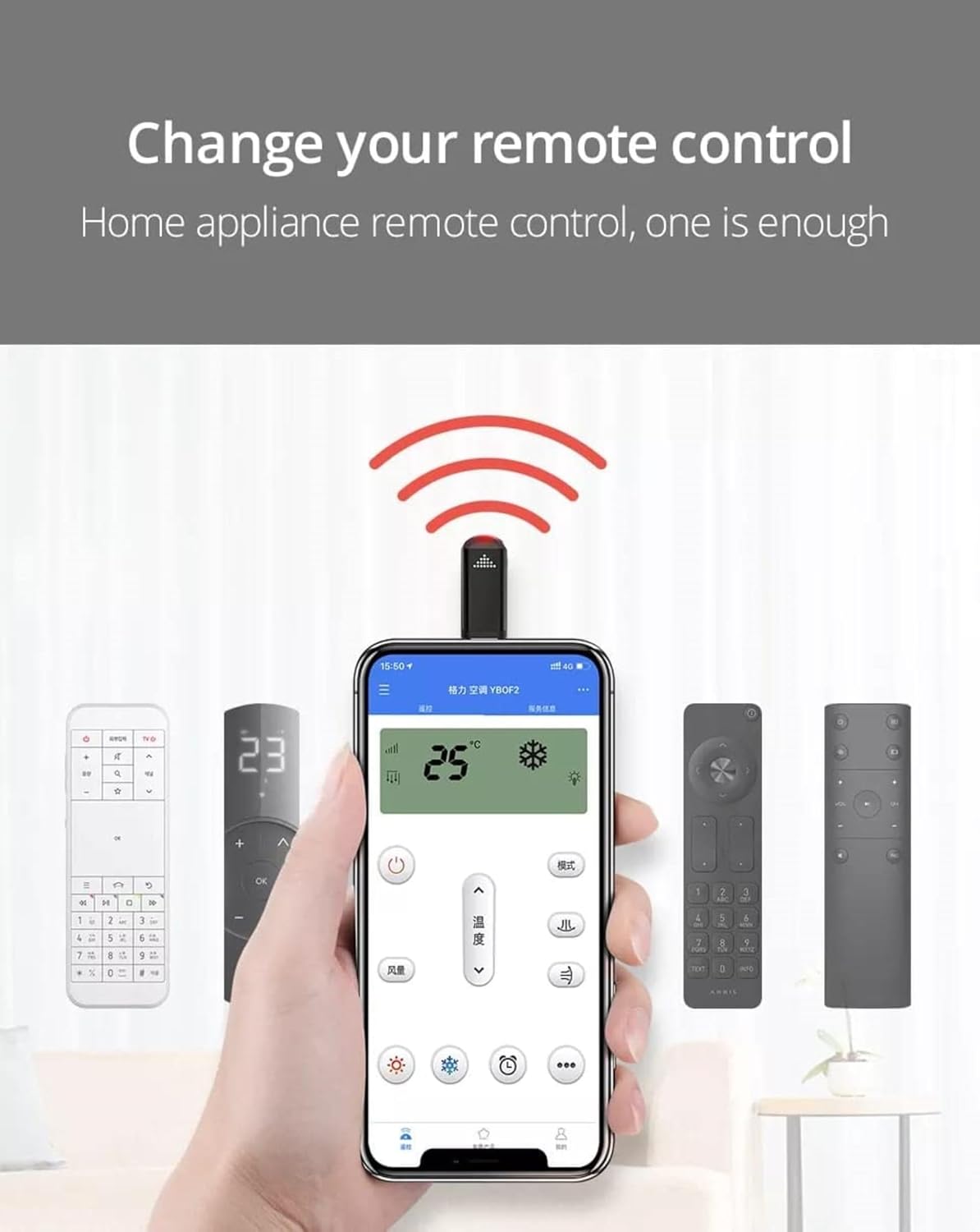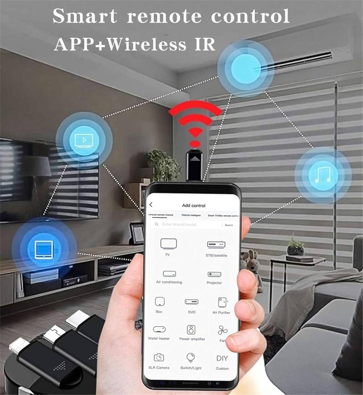 <br>This adapter can make your smart phone perfectly alternative to traditional infrared remote control<br>Phone infrared remote control adapter for IOS Lightning /Type-C/Micro Android port as you choose<br>Download the App to control. This powerful device connects to your phone and can control most of IR devices such as TV/DVD Player / STB/ Air Conditioner/Projector/Light/Fan etc.<br>Long distance control: 10m distance wireless control range, no need to charge, super distance<br>Small and compact appearance makes it portable. Can strap on your keychain and then take it away Best for Travelers(NOTE: If Application is Not Recognized Adapter, Please Check and Confirm You have Turned On OTG Function in your Device)