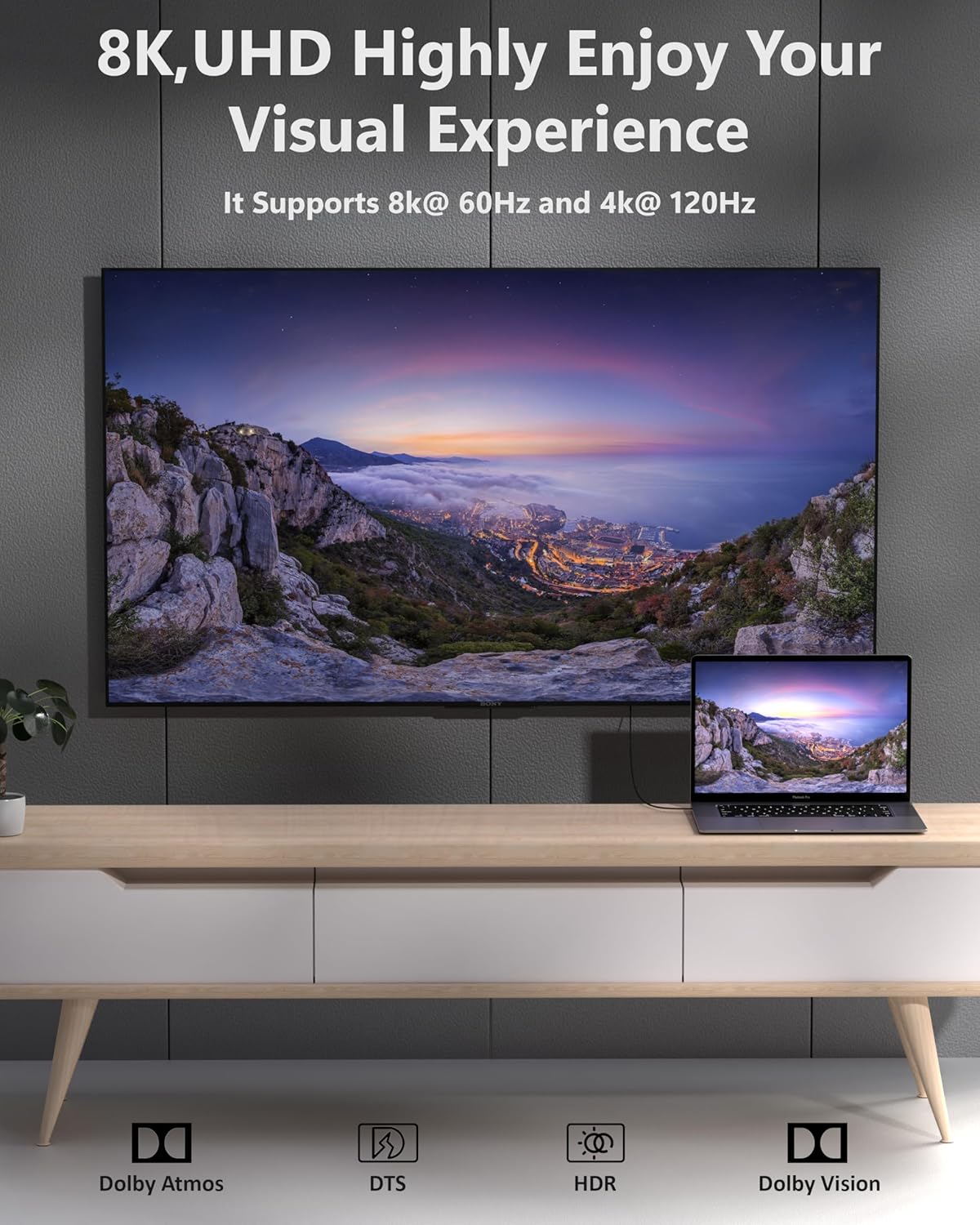 When you use the USB4 Cable, it can support 8K@60Hz HD video & audio output, and it make your game or office have a more high-definition and excellent experience.