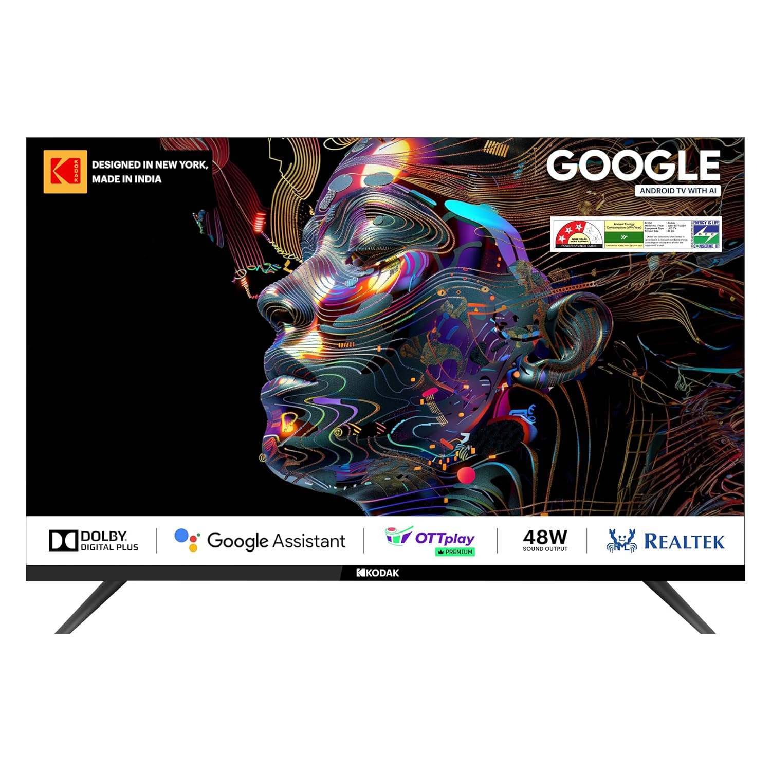 Experience entertainment like never before with the Kodak QLED TV! Dive into stunning visuals with HDR, seamlessly cast your screen with Airplay, and enjoy lightning-fast performance powered by the Realtek processor. Plus, with Google Assistant, managing your TV and smart home is effortless.