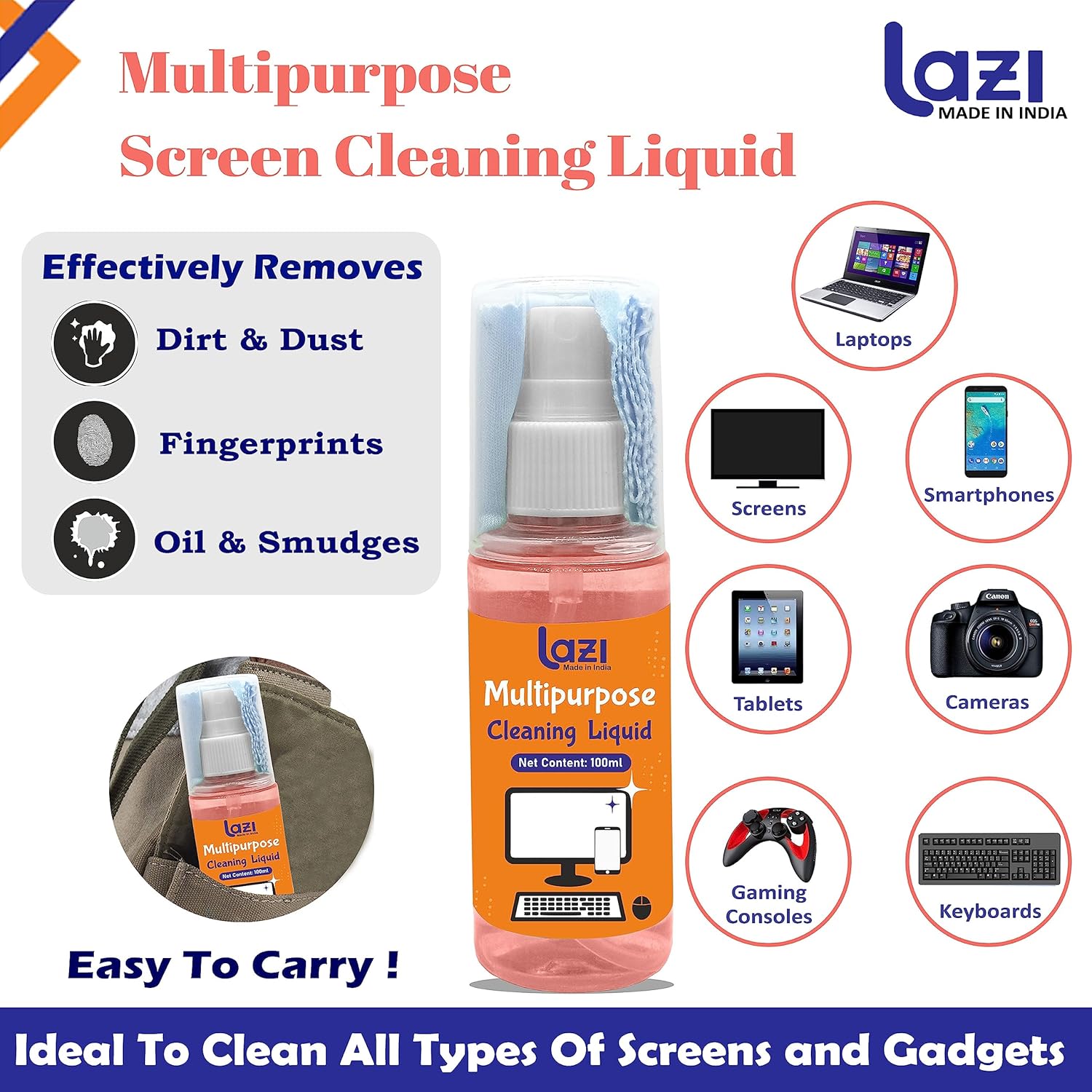 Most of the people faces this situations that screen frequently get dirty, cannot clean with water, if cleans with cloth leaves residue not removes stains. Use our LAZI Multipurpose Screen cleaning spray with microfiber cloth which easily cleans dirt dust fingerprints & other smudges on the screen’s surface and leaves no residue on screen and gives polish effect on all types of glass and electronics screen. You can easily carry screen cleaning spray bottle in your bag.