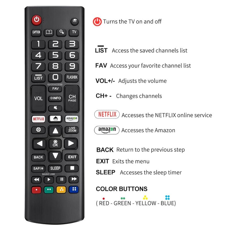 This is an innovative keyboard remote controller for LG Smart TV. Easy to grip, small and compact size, it can fit with various brand models for LG. Specifications: Product Name: Remote Controller Type: TV remote controller for LG TV Power: 2 x AAA batteries Transmission Distance: 10m Material Process: ABS Color: Black Product Dimensions: 23.5 x 4.8 x 2.4cm / 9.25 x 1.89 x 0.94inch Package Included: 1 x Remote Controller(included battery) Note: 1. Please allow 1-3cm error due to manual measurement. Thanks for your understanding. 2. Monitors are not calibrated same, item color displayed in photos may be showing slightly different from the real object. Please take the real one as standard.
