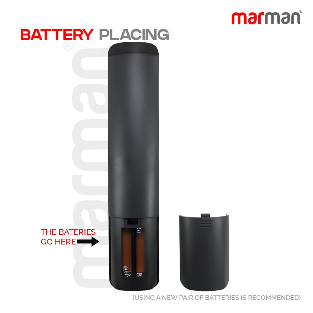 Caution: Avoid mixing old and new batteries. If the remote becomes unresponsive, reinstall fresh AAA batteries. Replace batteries if the remote becomes less sensitive. (Batteries not included).