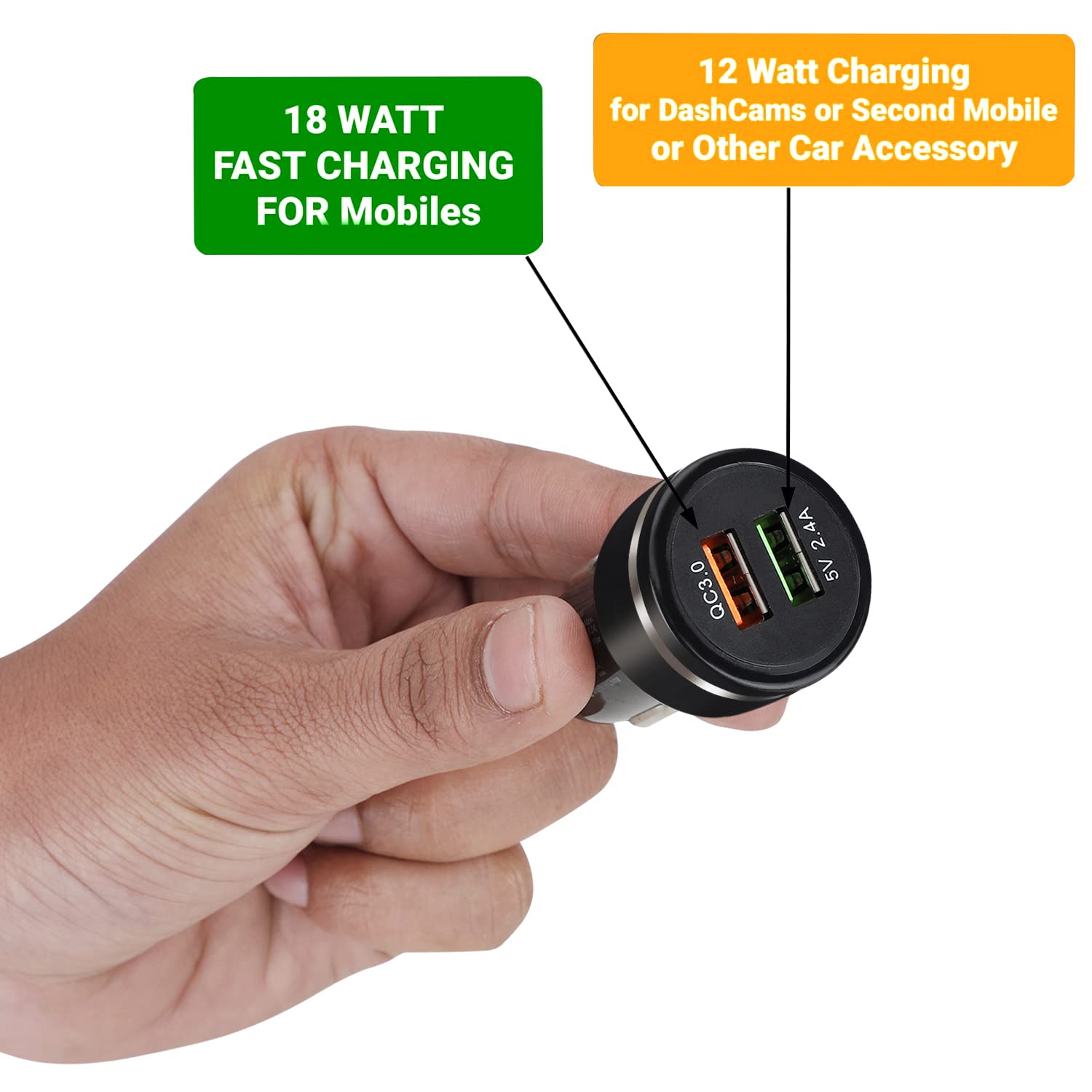 [ UNIQUE ] Con-Current Charge Technology :- if you use Orange Port and your mobile is getting charged at 18Watts and then you plug another mobile in Green Port , then Your Orange Port Mobile doesn’t get Slow Charging , it keeps getting Fast Charged Continuously . THIS FEATURE IS NOT PRESENT IN OTHER CAR CHARGERS