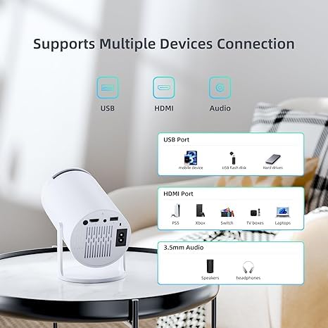 【 Multiple Compatibility】Equipped with HDMI, USB, and a 3.5mm audio port, the HY300 Pro projector easily connects to your Phone, Laptop, PC, TV Stick. Plus, it makes a perfect gift for birthdays, Christmas, and New Year celebrations.