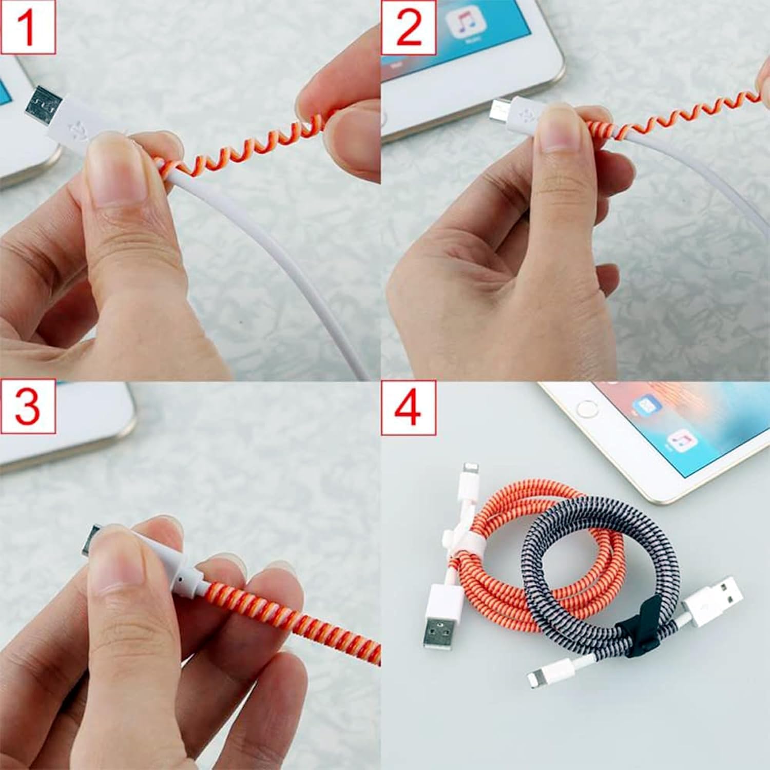 Spiral Cable Protector: Use this wire protector to prolong the life of your USB cable and stop replacing your expensive iPhone and Android charger cables. The spiral cable protector reduces damage by covering your entire cable.