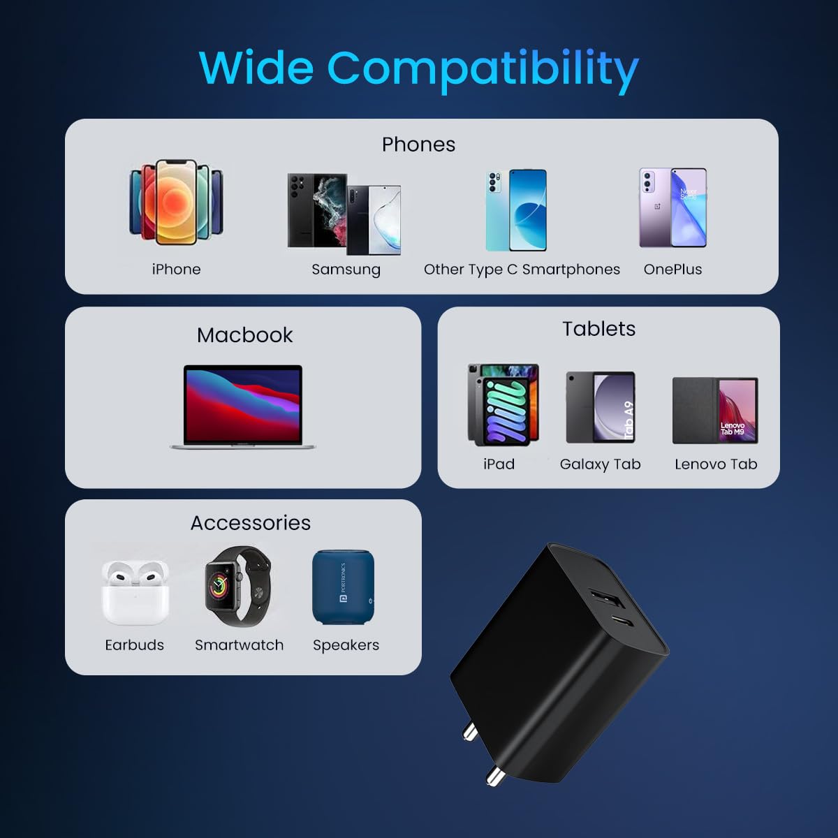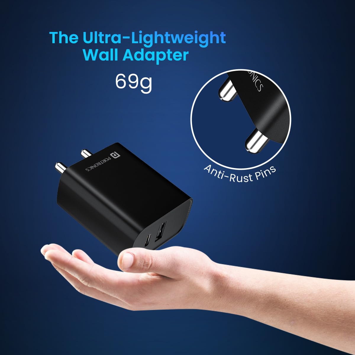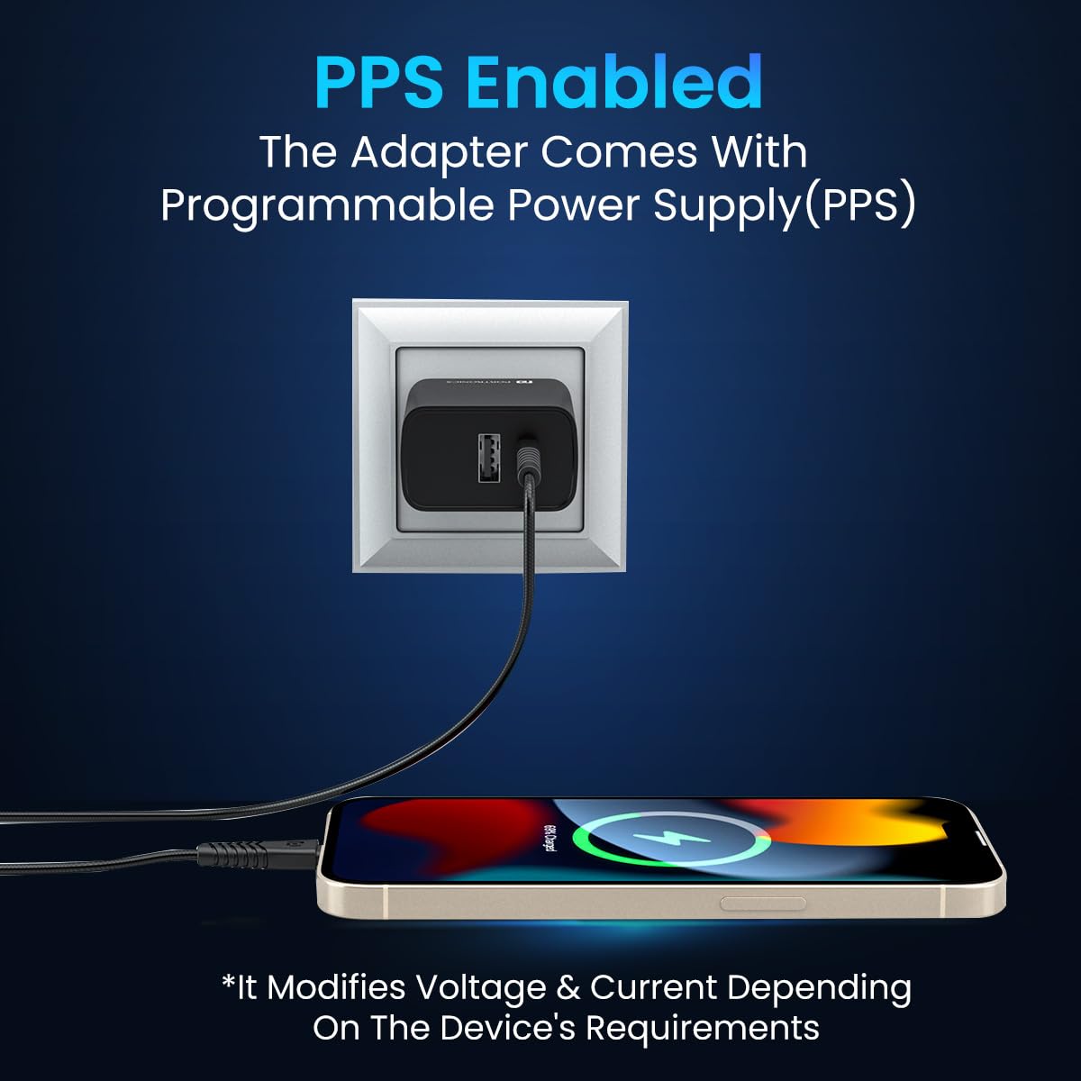 【PPS SAFE】: The Portronics adapter has PPS (Programmable Power Supply) the type C charger modifies voltage and current by feeding maximum power based on a device’s charging status.