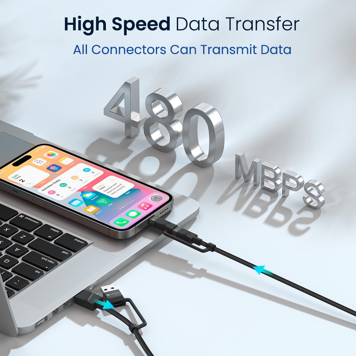 Rapid Data Sync : Transfer data with lightning speed of this newly launched 4 in 1 Cable. Quickly move files, photos, and videos between your devices without waiting for a longer time.