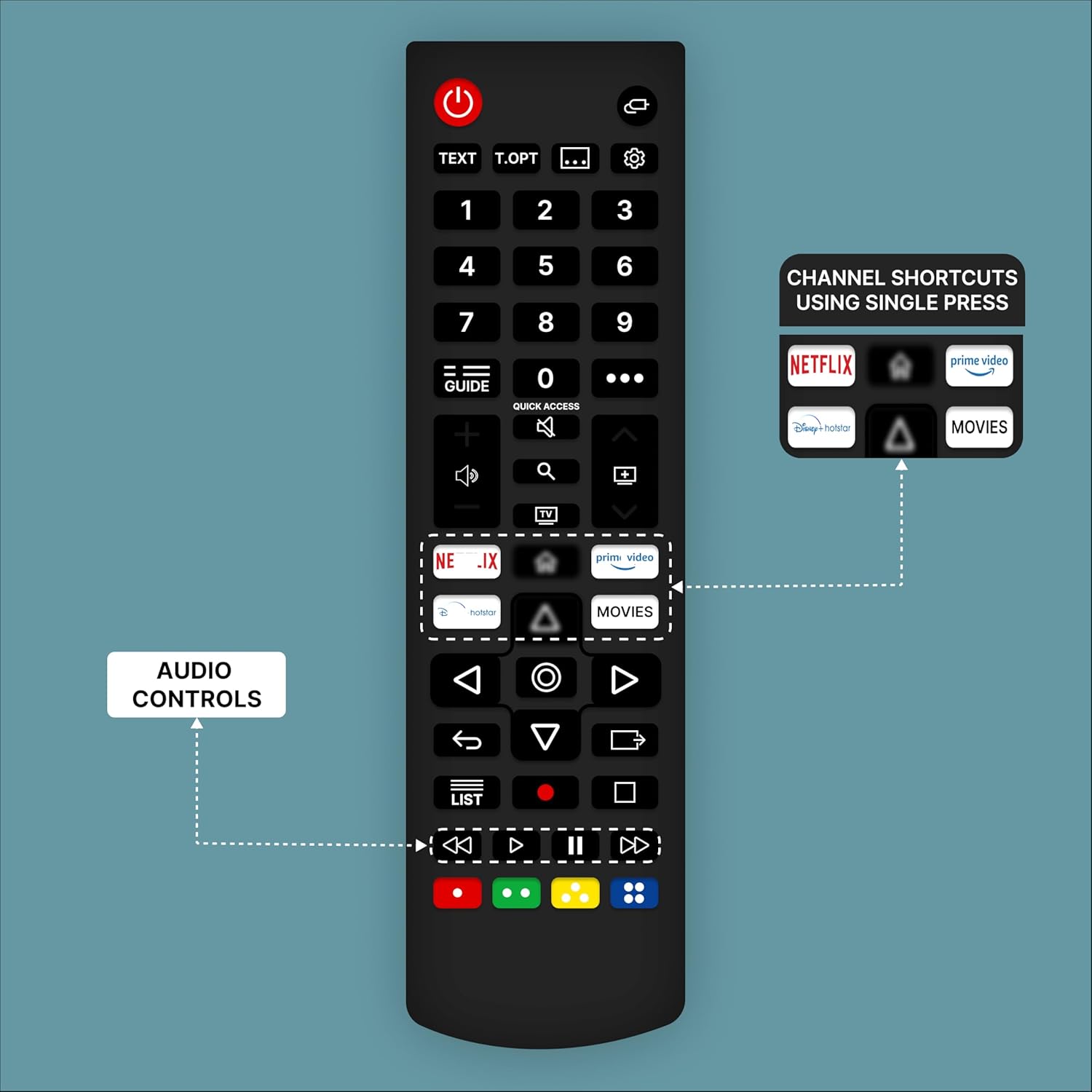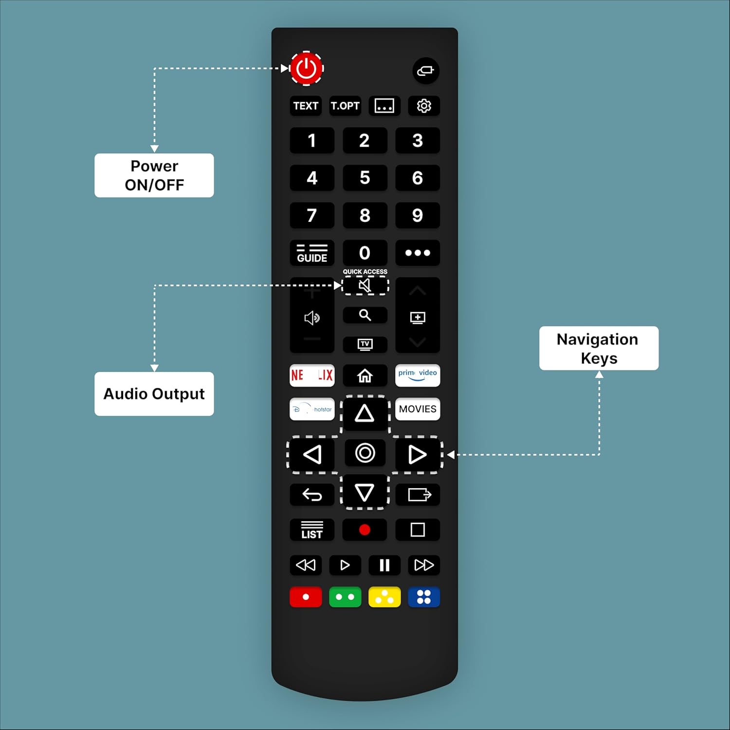 【HOT-KEYS】 Get quick access to your favourite content or Live TV with preset app buttons for Netfix, Prim Video, Movies and Hotstar.