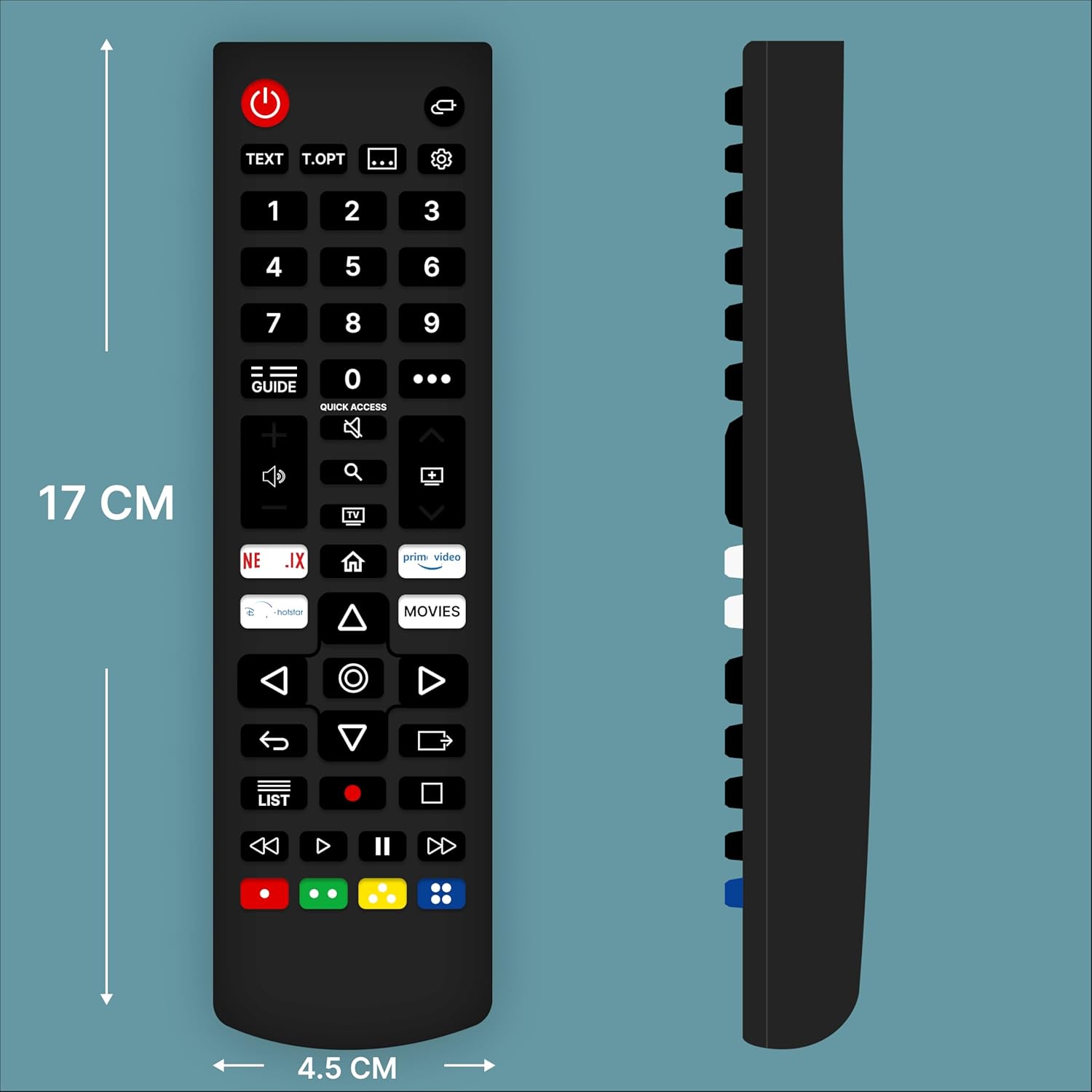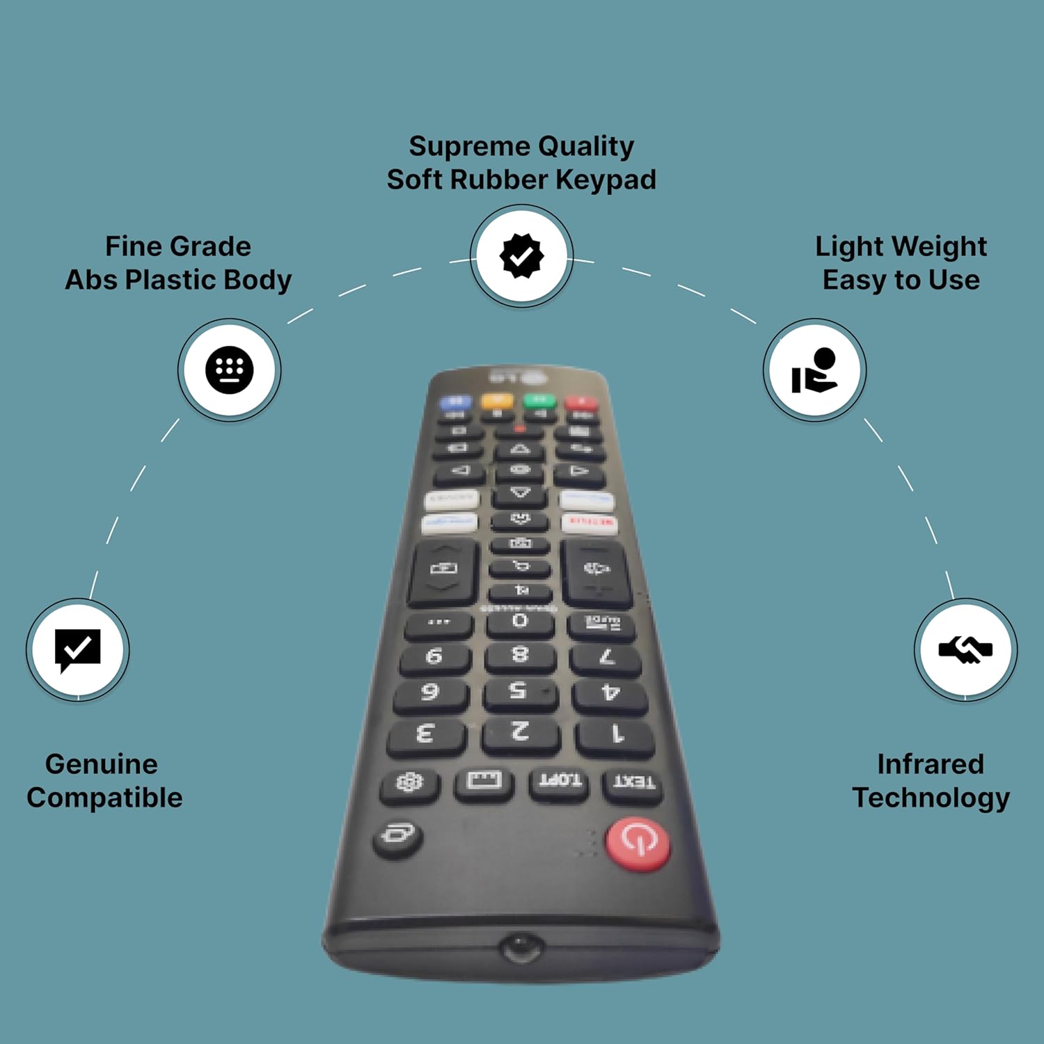 Frequently Asked Questions: 1. Batteries Included? Not included. 2. Not Working Properly at first Use? Please do not insert batteries from old remote control. Please make sure you put on brand new batteries while first use. 3. Doesn’t Support? Please make sure your original remote looks back to back like our displayed remote. Compatible with LG Smart TV Remote Control (AKB76040308) is a high-quality replacement remote designed for LG LCD, LED, OLED, QLED, 4K UHD, and 8K Android Smart TVs. This remote does not support voice control, making it ideal for users looking for a straightforward and easy-to-use option. It includes dedicated hotkeys for Netflix, Prime Video, Movies, and Hotstar, allowing instant access to your favorite streaming apps with just a press. Built with a durable body, soft-touch buttons, and ergonomic design for comfort and long-term use. No programming or setup required—just insert batteries and start using. Delivers reliable performance with strong signal strength and quick response. This is a compatible replacement remote and not an original LG product. Please ensure your TV model matches before purchasing. Batteries not included. Ideal for replacing lost, damaged, or non-functional remotes with a budget-friendly, efficient solution.