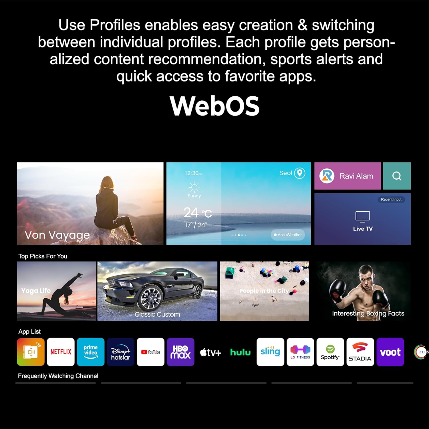 All Features In-Built <p> With the WebOS TV experience built-in smart Voice Remote, you can easily get to the movies and TV show you love. Enjoy new features such as Live View Picture and a TV experience that gets smarter every day. All Features in built like ThinQ AI, 4K Ultra HD, HDR10, MEMC, Magic Remote, and many more features in this TV. The Voice Remote works like a traditional remote and also lets you use your voice to launch apps, search for titles, play music, switch inputs, control smart home devices, and more. </p>