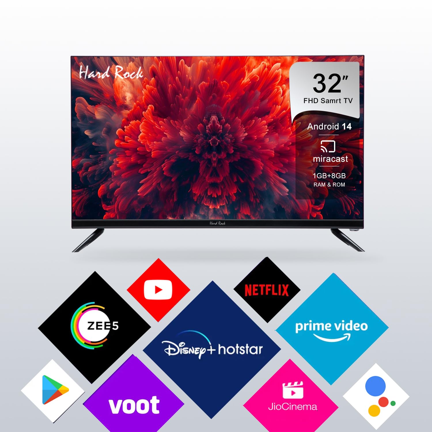 <br>Android 14 OS: Experience a faster, more secure, and user-friendly interface with the latest Android operating system.<br>1GB RAM / 8GB Storage: Smooth multitasking and enough space to install your favorite apps.<br>Popular Apps Pre-installed: Enjoy YouTube, Prime Video, Netflix, and Jiostar right out of the box.<br>USB x2: Plug in your media devices to enjoy photos, music, and videos.<br>HDMI x2: Seamlessly connect gaming consoles, set-top boxes, or laptops.<br>32 inch HD smart TV is the perfect blend of performance and affordability, making it an ideal choice for bedrooms, guest rooms, and compact living spaces.