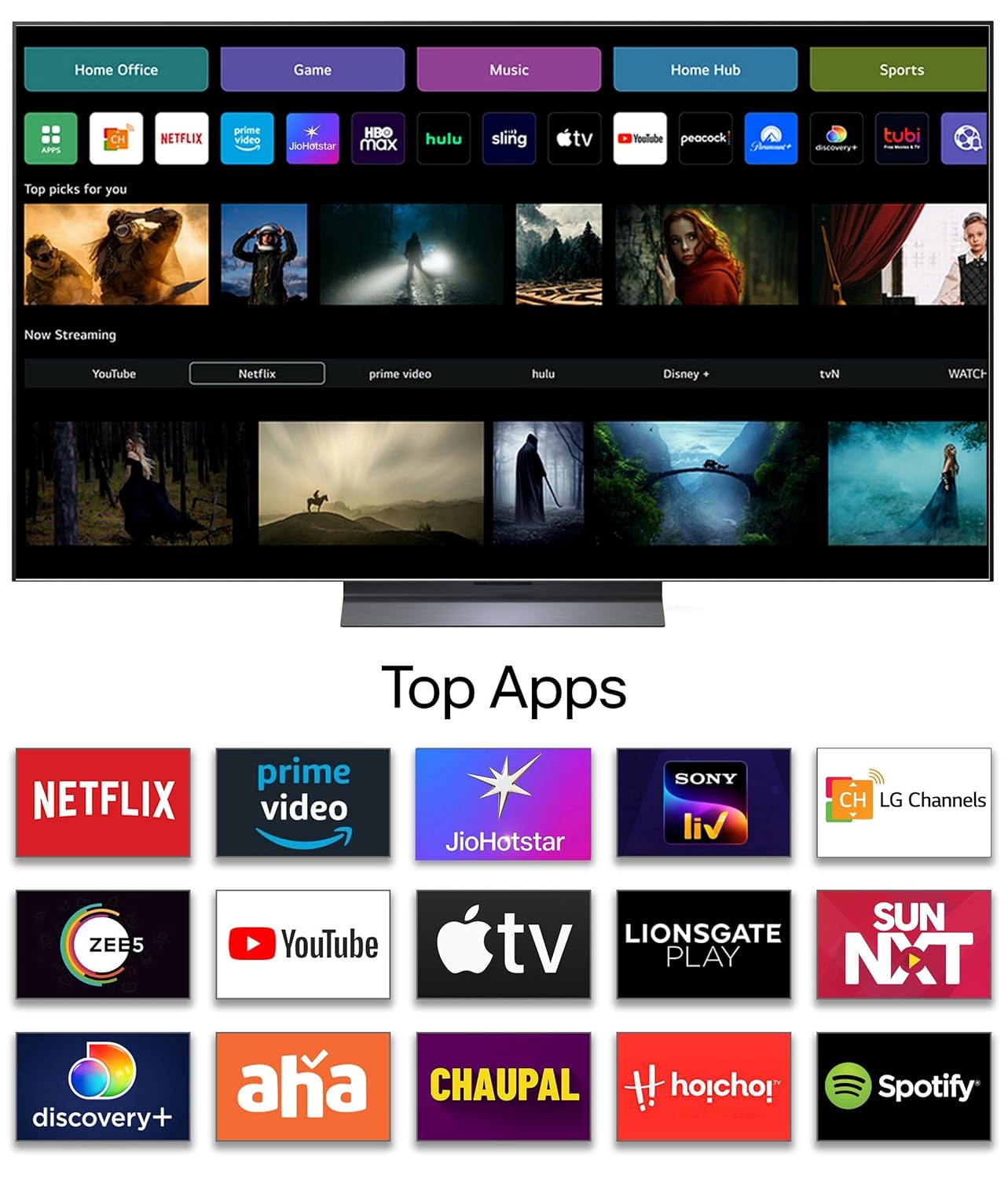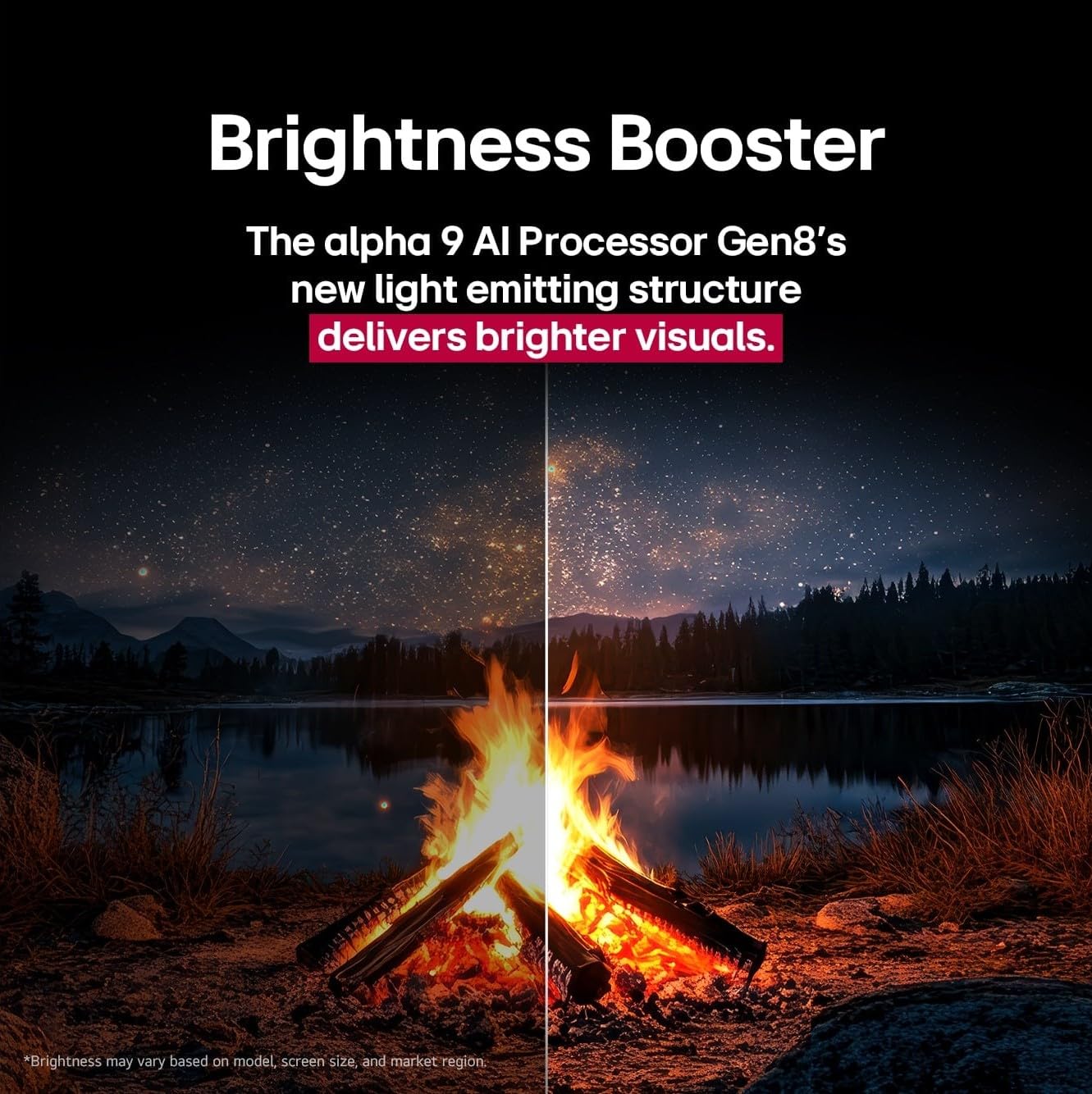 Smart TV Features: webOS 25 | AI Agent | Intelligent Voice Recognition | AI Concierge | AI Chatbot | AI Voice ID | AI Search with MS Copilot | AI Magic Remote | Amazon Alexa (Built-in) | Works with Hey Google | LG ThinQ (Smartphone Remote App) | 100+ Free LG Channels | USB Camera Compatible | G-Sync Compatible (Nvidia) | FreeSync Compatible (AMD) | VRR (up to 144Hz) | 2.5 GB RAM | 16 GB ROM | Energy Rating: 2 Star | Annual Energy Consumption: 274.63 kWH/year