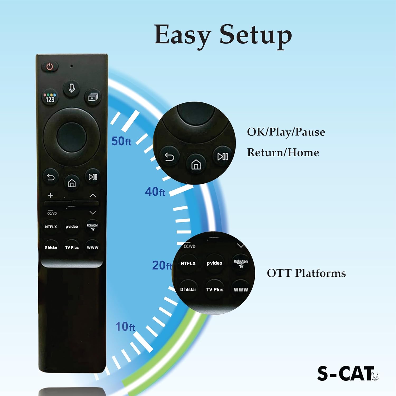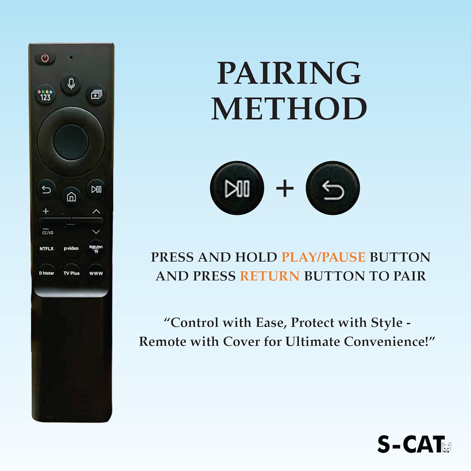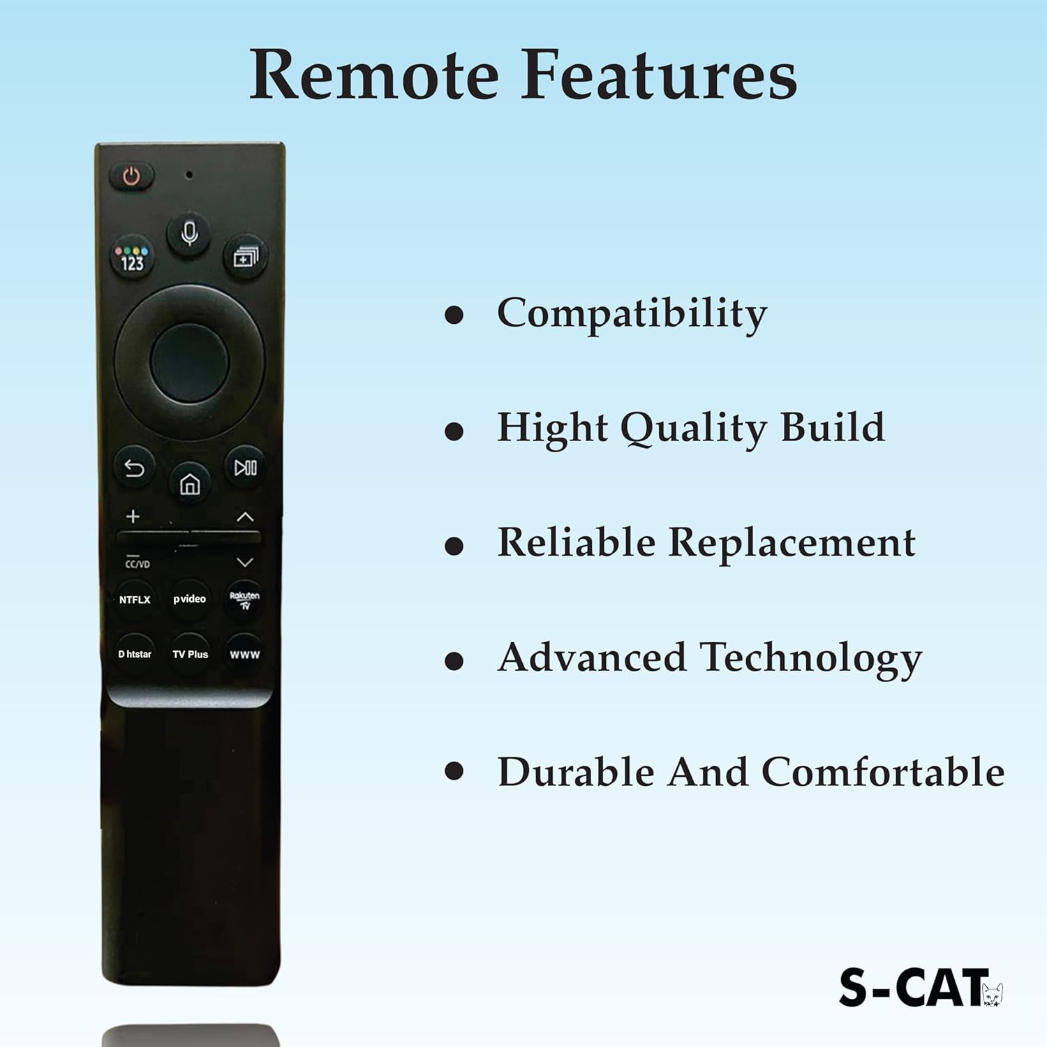 Durable ABS Construction: Crafted with high-quality ABS material, the S-CAT remote for Samsung smart TV delivers a lightweight yet sturdy feel. Enjoy lasting durability that withstands daily use for all your entertainment needs.
