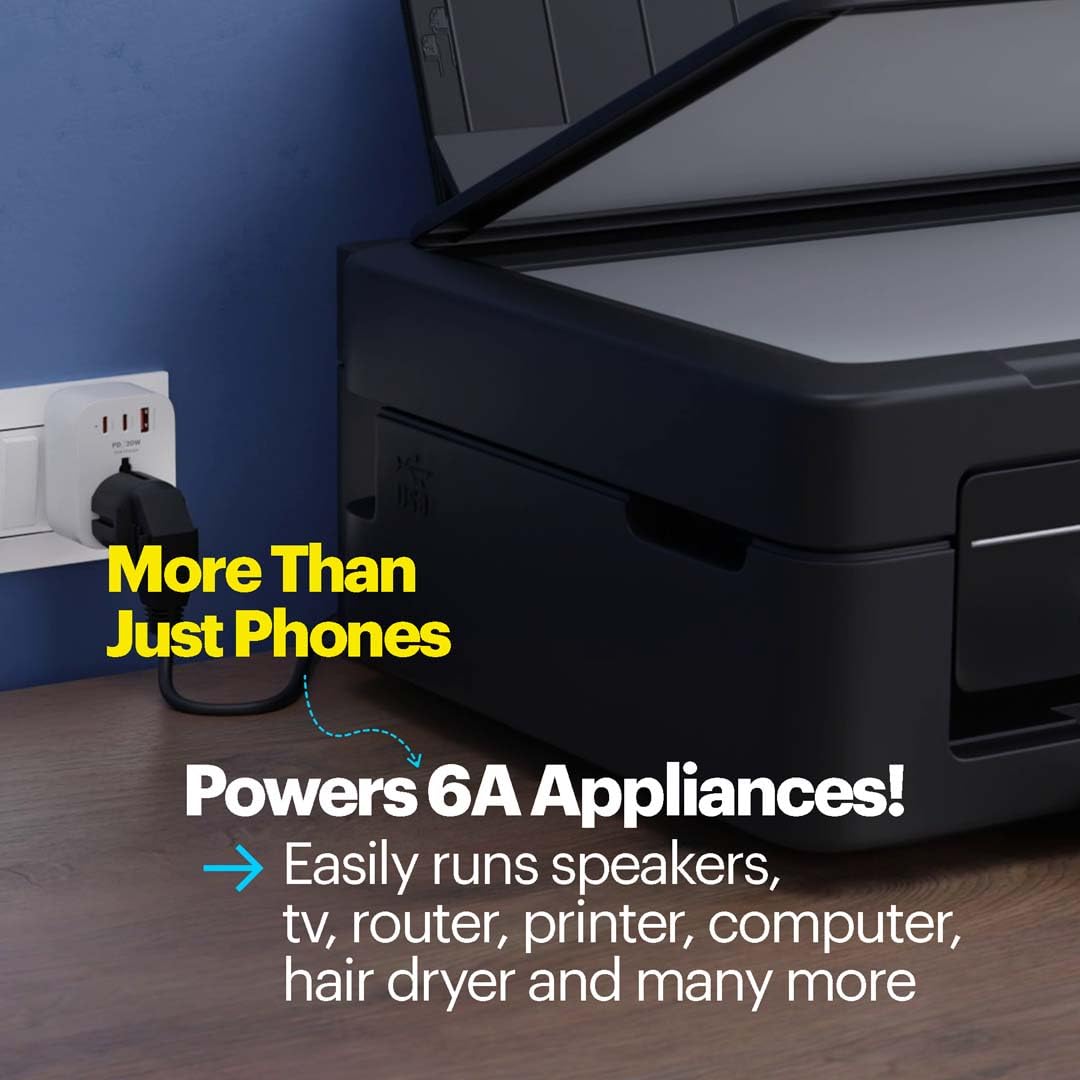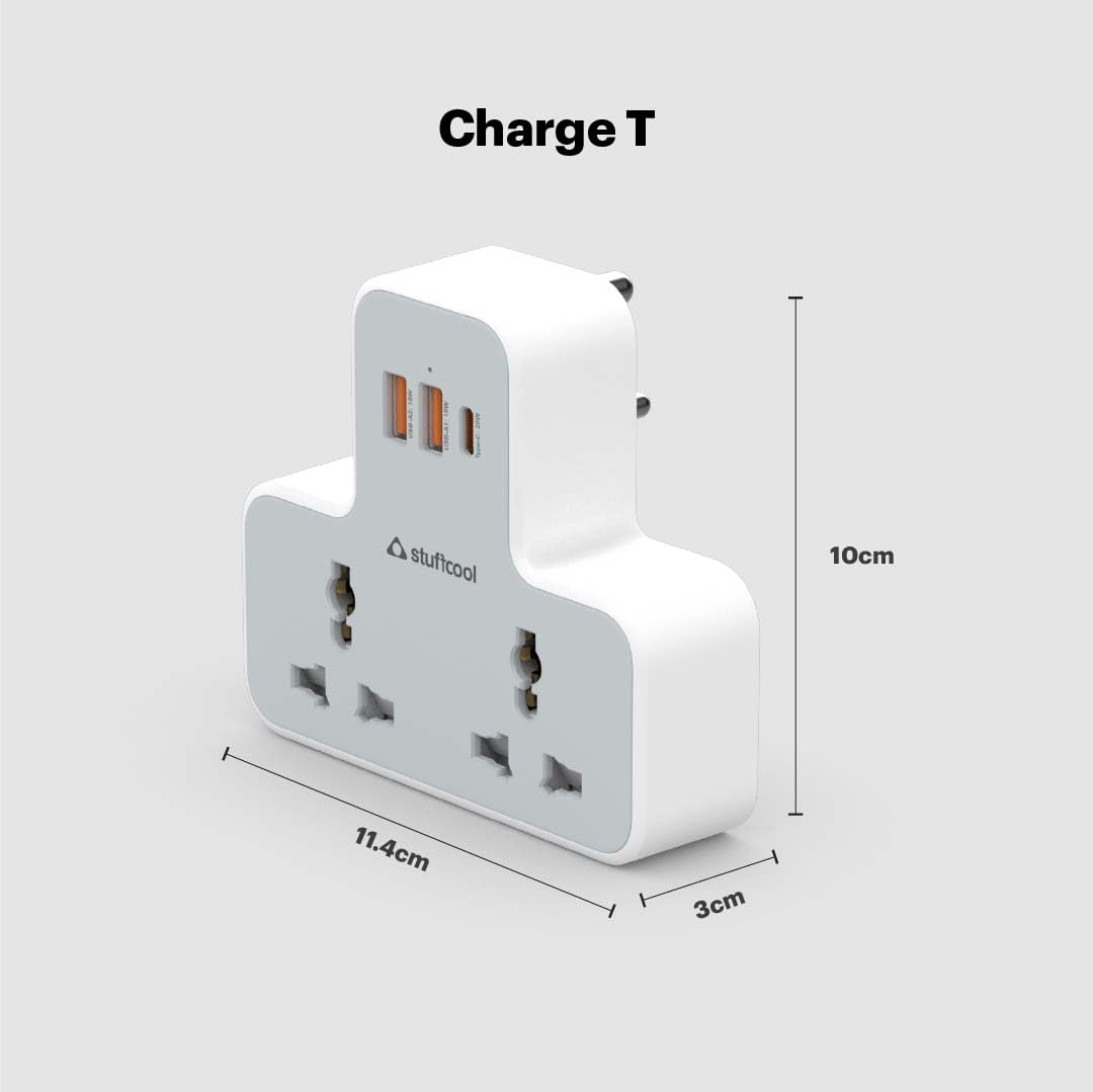 [Global Power, Two Sockets, 1 ChargeT!]: The ChargeT Mini Universal Multi Plug with 20W GaN Charger turns any single AC socket into a compact global multiple device charging station. Without blocking its adjacent switches or plugs, the ChargeT is perfectly Made for India – helping you charge more from just a single AC socket!
