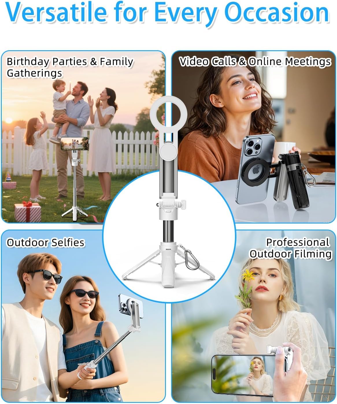 【4-in-1 Multi-Functional Selfie Stick Tripod】More than just a phone holder — it transforms into a selfie stick, handheld camera grip, compact tripod, and desktop phone stand in seconds. Perfect for everyday shooting, remote work, video conferencing, vlogging, group photos, or travel photography. One tool, endless possibilities for your content creation needs.