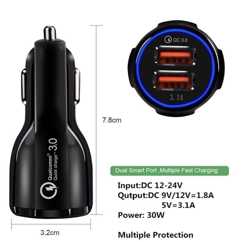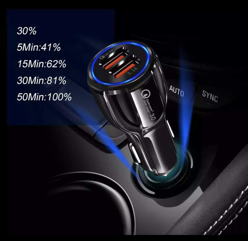 • * With Qualcomm Quick Charge 3.0 technology, USB car phone charger is able to charge compatible devices up to 4 times faster than conventional chargers, you can charge your compatible devices to 80% in 35 minutes, which greatly saves your time and allows for efficient charging.