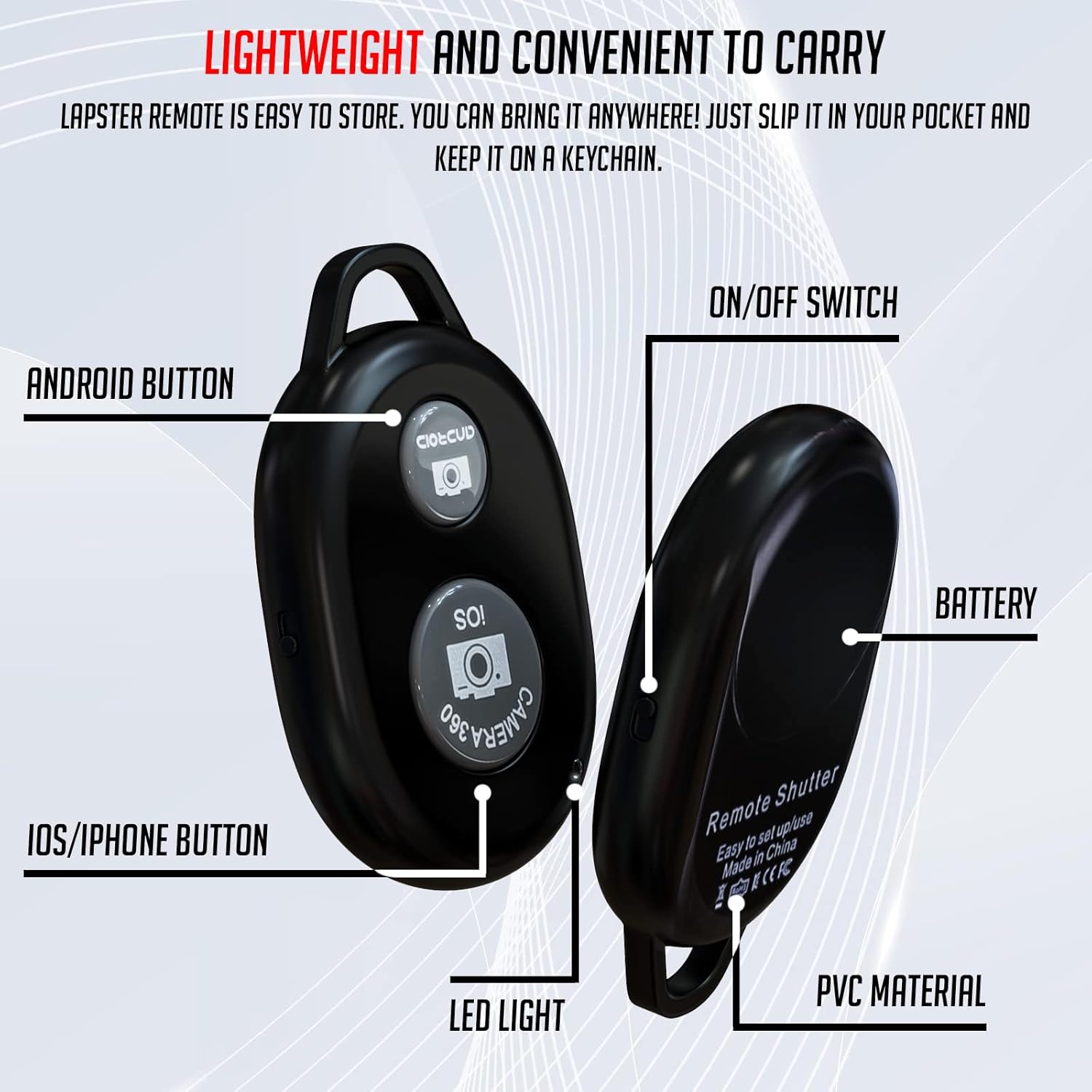 LS LAPSTER Quality Assured Lapster Camera Shutter Remote Control with Bluetooth for Hands-Free Photos and Videos -Compatibility with iOS and Android Devices-Black