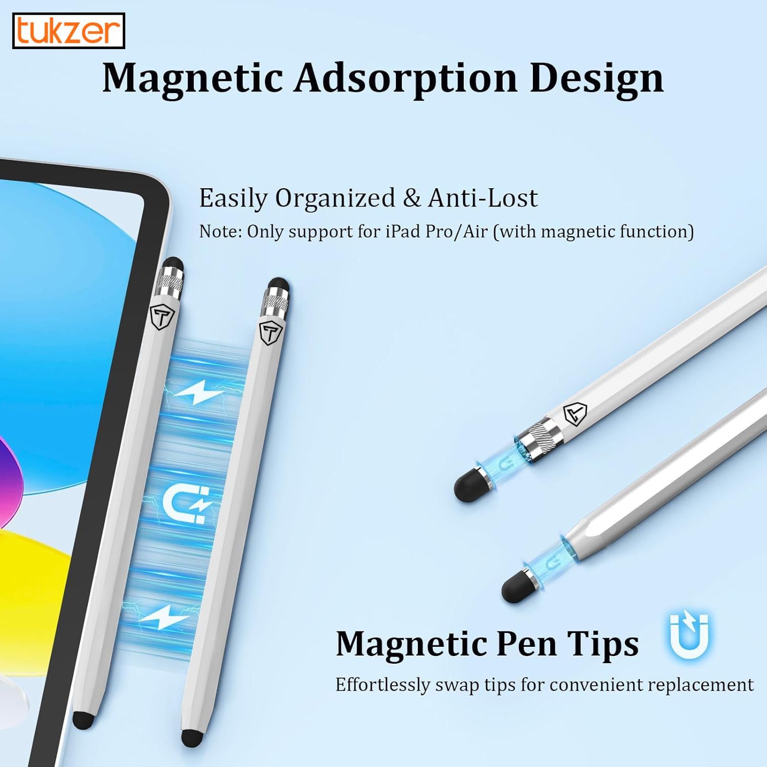<br>2-in-1 Stylus Design: Equipped with dual high-sensitivity rubber tips, this stylus ensures smooth, precise, and uninterrupted performance. The dual-end design allows seamless switching for enhanced convenience, making it perfect for writing, drawing, browsing, or gaming.<br>Wide Compatibility: 2-in-1 Tablet Stylus Pen Widely compatible with all touch screen devices, including Android, iOS, iPhone, Apple iPad (Air, Pro, Mini), tablets, Samsung Galaxy devices, Chromebooks, Microsoft Surface and many more<br>Magnetic and Aluminium body: Its magnetic body allows you to securely attach the stylus to any metal surface, reducing the risk of misplacement and making it a convenient companion for everyday use. Crafted from strong yet lightweight aluminum, this stylus pen offers exceptional durability without adding bulk.<br>High Sensitivity: Engineered for precision, this capacitive stylus pen offers high sensitivity for fast and responsive touch input. Whether you're jotting down notes or sketching, it delivers a smooth, accurate, and natural writing or drawing experience, making it ideal for both productivity and creative tasks.<br>Lightweight & Portable: Designed for convenience, this stylus is lightweight and highly portable, making it an ideal tool for on-the-go tasks. Whether you're in a meeting, classroom, or traveling, it easily fits into your bag or pocket, helping you stay productive anytime, anywhere.