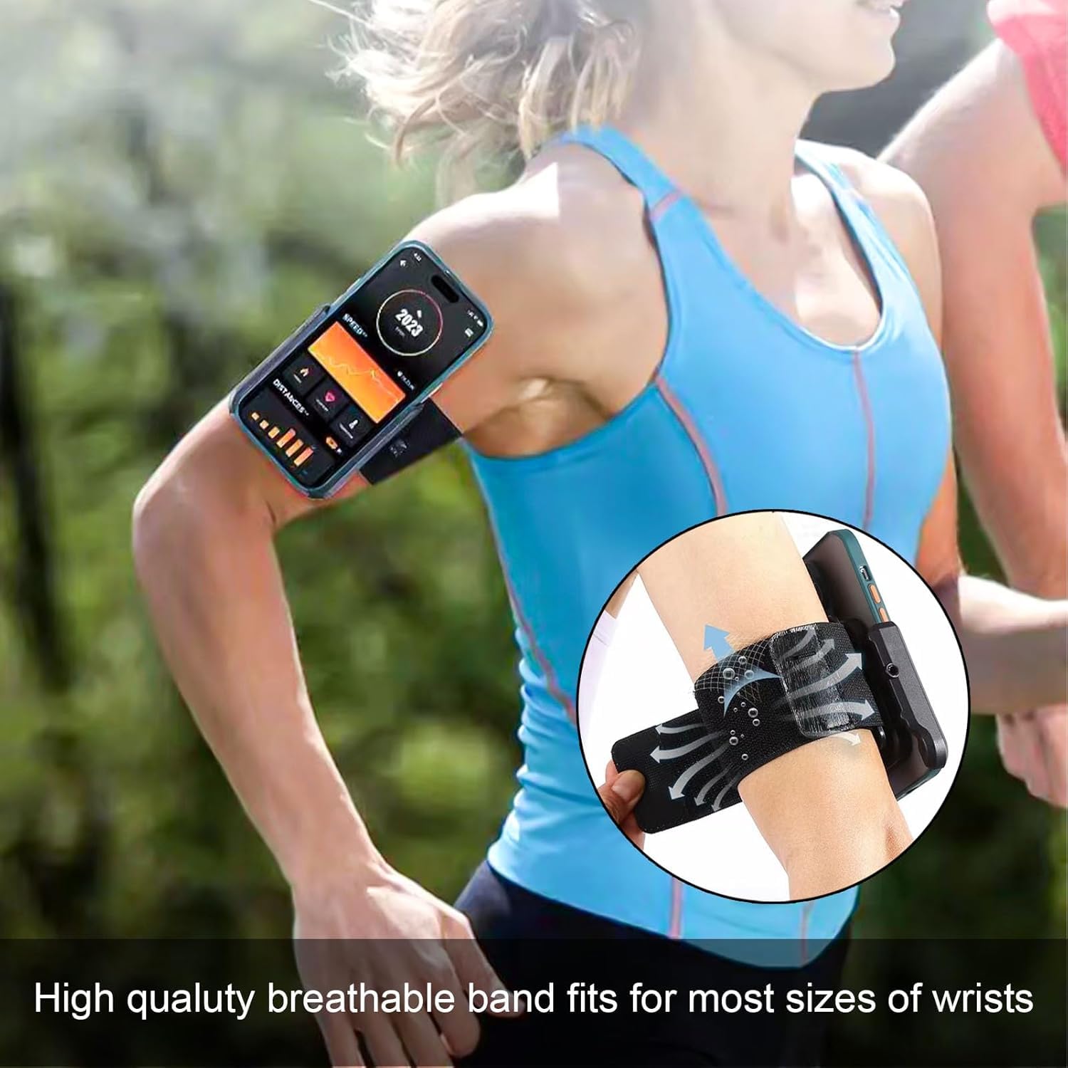 <br>360° Rotating Wrist Phone Holder- This adjustable wrist armband features a 360-degree rotating phone mount, allowing you to easily view your screen from any angle. Perfect for accessing apps, answering calls, or navigating hands-free while staying active. Whether you're at the gym or outdoors, enjoy full-screen visibility without removing your phone.<br>Detachable & Quick-Release Design- The innovative quick-release design lets you detach and reattach your phone in seconds, ensuring fast access during workouts or daily activities. Ideal for those who need quick use of their device while running, cycling, hiking, or driving. The sturdy grip keeps your phone safe and secure during movement.<br>Universal Compatibility with Most Phones- This phone wrist strap is designed to fit a wide range of smartphones including iPhone and Android devices. Whether you use iPhone 14, 13, Samsung Galaxy, or other brands, the adjustable holder securely grips your phone without slipping, making it a must-have mobile accessory for fitness lovers.<br>Comfortable, Adjustable & Sweat-Resistant- Made from soft, breathable materials, this armband ensures long-lasting comfort and is sweat-resistant for extended wear. The adjustable strap fits all wrist sizes snugly without causing irritation, making it perfect for both men and women during workouts, hikes, gym sessions, or everyday use.<br>Ideal for Sports, Workouts & Outdoor Use- Perfect for running, gym, cycling, hiking, and even driving, this hands-free mobile holder helps you stay connected while focusing on your activity. Whether you're tracking your run, changing music, or taking a call, your phone stays secure and accessible without interrupting your movement.